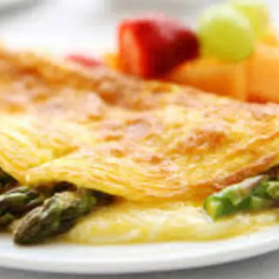 Add some butter in another frying pan for eggs, then add the asparagus and cheese (optional), pour a little of the eggs over them and cover, cook for 5 minutes on low heat or until the omelettes are ready.