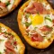 Crack a whole egg on top of the dough, place sliced tomato or red bell pepper, a slice of ham, and cheese (optional). Bake at 200°C for 20 minutes or until the cheese is melted and the dough is well cooked.