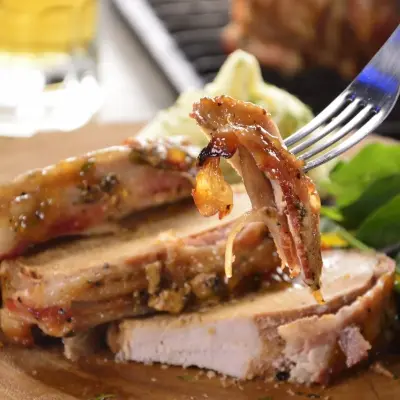 Treat the family to this exquisite pork loin, wrapped in bacon, and glazed with apricot jam. It is very juicy and an excellent option to prepare for any gathering, a very easy and rewarding recipe.