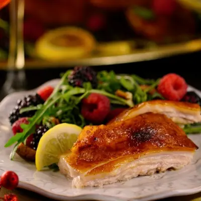 The Roast Suckling Pig for Christmas is a very typical preparation in Spain, where it is called Cochinillo asado. This delicious delicacy consists of a small suckling pig marinated in orange juice, cooked in the oven with lard and herbs such as bay leaf, thyme, and rosemary, flavored with a touch of garlic and onion. This tender meat remains totally juicy and crispy at the same time. The most typical way to carve the pig is with a plate.