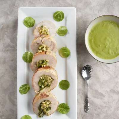This delicious recipe for preparing an exquisite turkey breast roll will help you at mealtime. The flavor of its spinach sauce will fascinate you and will help you pair it perfectly.