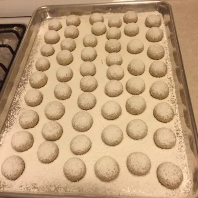Preheat the oven to 180ºC. Meanwhile, shape the dough into 2.5 cm balls and place them on an ungreased baking tray. Bake for about 15 minutes until they have a light golden color.