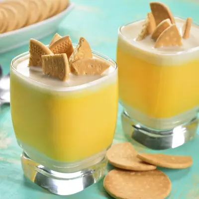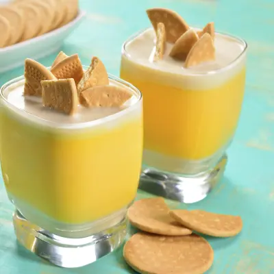 Add a little cookie sauce to individual jars. Fill with D´Gari® Vanilla Caramel Flan and refrigerate for 20 minutes or until it slightly sets.