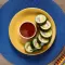Cut off the ends of the cucumber, cut in half, and remove the seeds with a spoon. Set aside.