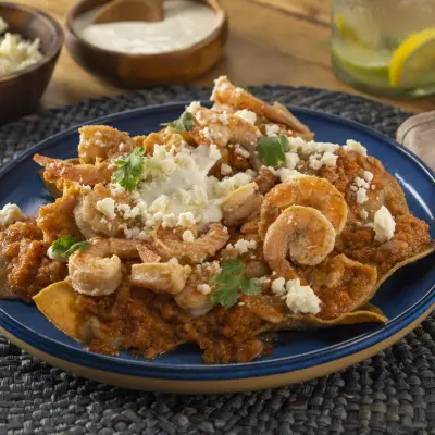 This recipe for ranch-style chilaquiles with shrimp is your best option for a filling and exquisite breakfast, lunch, or dinner. Additionally, these chilaquiles will be ready in no time thanks to McCormick® Garlic Mojo Marinade powder, so don't hold back on your cravings!