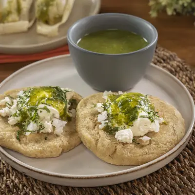 Shape a ball of dough with your hands, fill it with chicharrón, and close it with your fingers, giving it a round shape. Place plastic on a tortilla press, then put the dough in the center and press gently until you obtain discs of approximately 8 cm. Repeat the process with the remaining dough and filling.