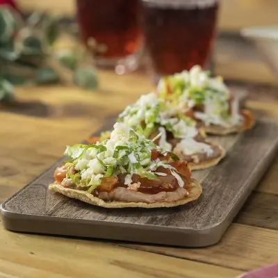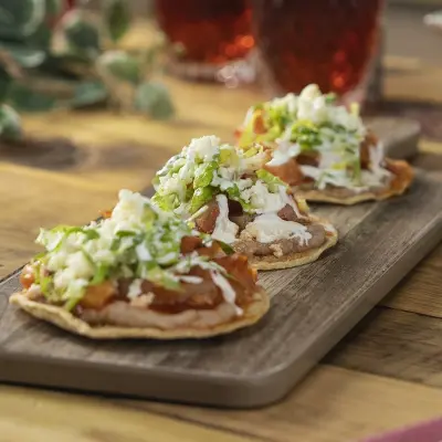 When it comes to a party or gathering, tostadas become the best option since they are easy, filling, and can be topped with all kinds of stews like tinga, picadillo, salpicón, and trotter. Which one is your favorite?Although all are delicious, trotter tostadas stand out for their great flavor. The classic recipe is made with precooked and seasoned beef trotter, onion, pickled chiles, beans, and more. This time we gave it a twist and enchilada the trotter with a three-chile sauce and EMBASA® Tomato Dressing Sauce. Does it sound tempting?Did you know? Beef trotter is a good source of collagen and is low in fat and calories.
