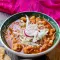 Clean the guajillo and ancho chiles, place them in a pot with enough water, add half the onion and garlic, and let it boil until softened. Roast the tomatoes.