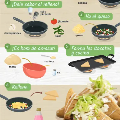 These itacates will become a favorite at home! Prepare them for the upcoming Christmas posadas or any other celebration and enjoy with a Sidral Mundet® strawberry-kiwi flavor. Additionally, these itacates are filled with a mixture of strips and mushrooms, give them a try!Did you know? The itacate is a very Mexican snack, but it is also a term used to refer to the food you take home after a party.
