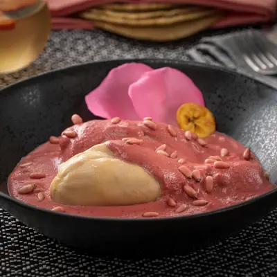 This mole is traditional from the state of Guerrero, and the pink color comes from the beet. This peculiar dish also has versions with hibiscus and different chiles. With this rose mole recipe, you will learn to make it from scratch, frying almonds, peanuts, chiles, and then grinding everything together. The combination of flavors makes this dish exceptional, and the intense pink color will make it stand out on your table.