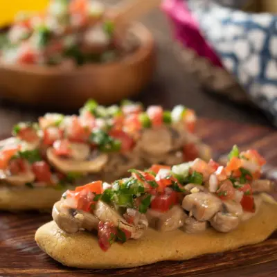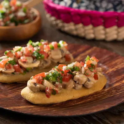 Try this recipe for tlacoyos filled with chickpeas and accompanied by mushrooms and pico de gallo. With this step-by-step guide, you will learn how to make tlacoyos without the dough drying out, and you will also see how to make a simple pico de gallo and how to quickly sauté some mushrooms. Tlacoyos are typical of Puebla and Tlaxcala, and can be filled with beans, chicharrón, ricotta, or other ingredients.