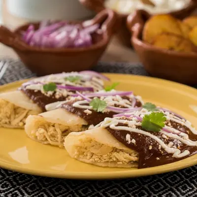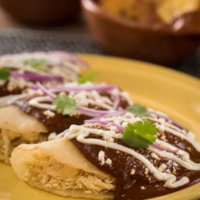 Mole enchiladas with chicken are a classic of Mexican cuisine, and besides learning to make mole from scratch, you will enjoy this recipe with P.A.N.® Pre-cooked White Corn Flour tortillas, which are not only delicious but also very easy to make. Get ready to enjoy the best flavor accompanied by homemade black mole. Enjoy them at any time of the day!