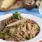 Add olive oil and onion to a deep pasta pot, cook for 2 minutes. Add the sauce, spaghetti, FUD® Herb Chicken Breast, sun-dried tomatoes, zucchini, mushrooms, and chopped walnut.